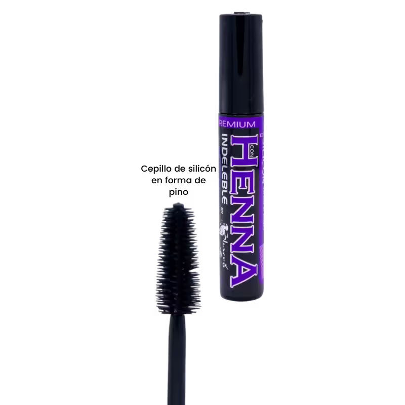 Aplica una máscara de pestañas micro-pigmentadora con Henna. Nuestro Rímel Henna viene con cepillo de silicón en forma de pino.